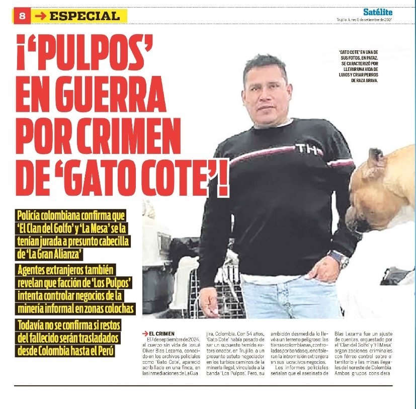 Tras el asesinato de Josué Blas Lezama, alias ´Gato Coté´, líder de banda criminal ligada a la minería ilegal. Las autoridades policiales confirmaron que las tensiones entre grupos criminales venían escalando desde hace meses, pues ´Los Pulpos´ buscaban diversificar sus negocios ilícitos y expandir su influencia, primero con el secuestro y la extorsión , y ahora con la minería ilegal.