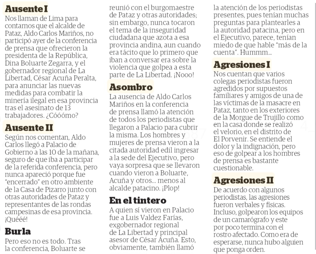 Región, Pág.8) (Correo, Política, Pág.4)(Panorama Trujillano, Trujillo, Pág.3)(Correo,